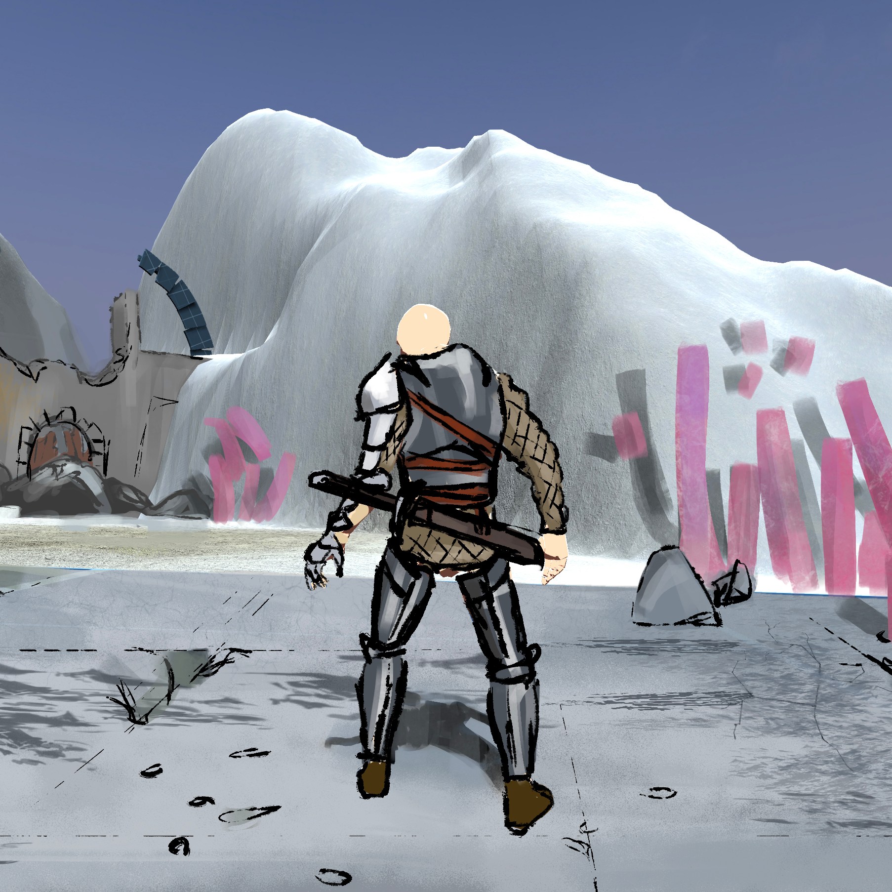 The toon is certainly interesting. There are many parts about it that I do like, but there is a lack of detail that comes with it. The shading can look very clean and cool, and does brighten up the otherwise mono-chromatic landscape, but overall I think it doesn’t fit the game.