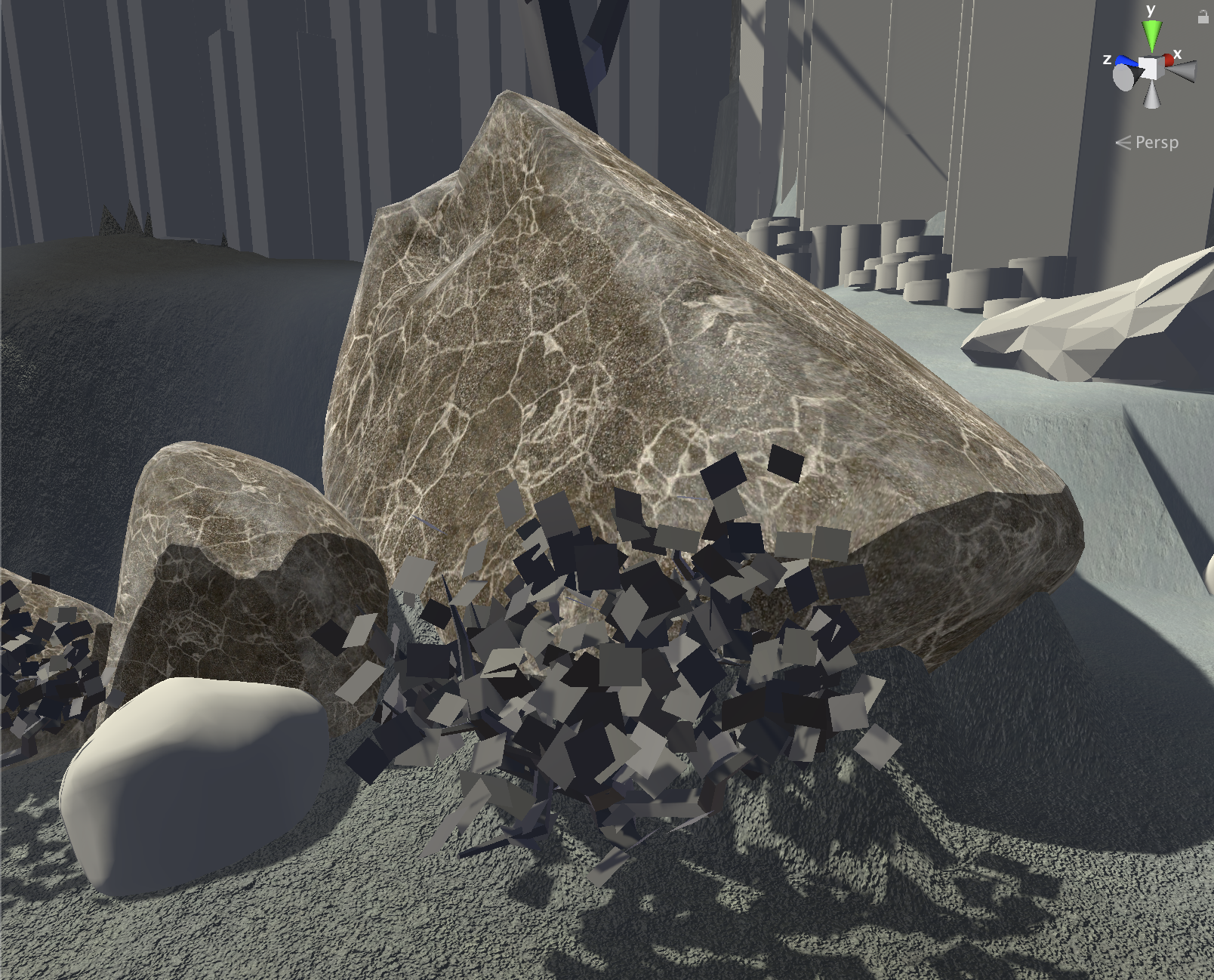 Since I am focusing on the one area, I also make many assets to occupy the environment. The list of assets include many types of rocks/boulders, pillars, basalt structures, fire pits, and a guard wall (which is still in progress).